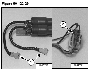 Installation: Install the wires into the connector as listed below. The terminal numbers are written on the back of the connector (Item 2) [Figure 60-122-29].