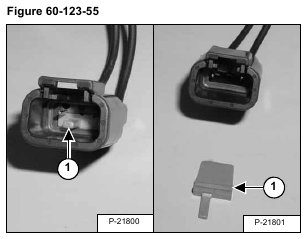 With a pointed tool, lift the tab (Item 1) [Figure 60-123-56] and pull the wire from the connector.