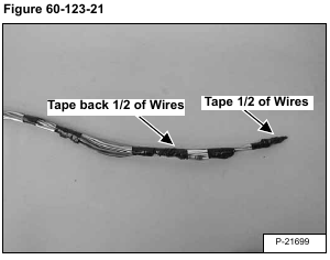 Tape half of the wires back and half forward [Figure 60-123-21] to keep the harness small enough to route through the control lever tube.