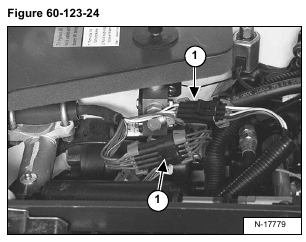 Connect the handle harness connectors (Item 1) [Figure 60-123-24] & [Figure 60-123-25] to the loader harness connectors.