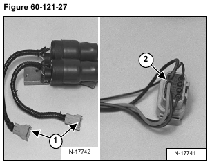 Installation: Install the wires into the connector as listed below. The terminal numbers are written on the back of the connector (Item 2) [Figure 60-121-27].