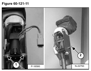 Installation: When installing the handle sensor into the control handle, check the routing of the switch handle wire harness (Item 1) [Figure 60-121-14] to assure proper return of the control handle to neutral.