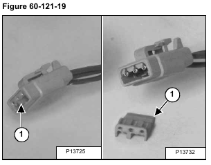 Using a pointed tool, press down on the tab (Item 1) [Figure 60-121-20] and pull the wire from the connector.