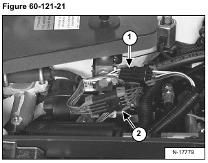 Disconnect the right switch handle connectors (Items 1 & 2) [Figure 60-121-21] from the loader wiring harness connectors.