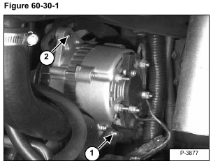 Loosen the alternator mounting bolt (Item 1) [Figure 60-30-1].