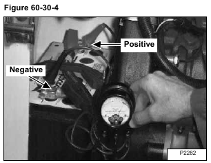 Connect the negative (-) voltmeter lead to the negative (-) battery terminal [Figure 60-30-4].
