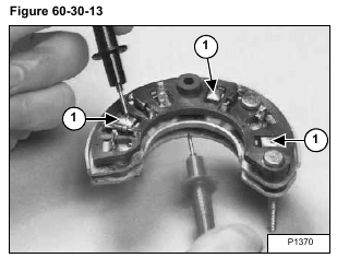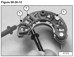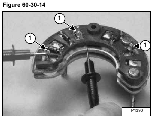 Touch the probes to the terminals (Item 1) [Figure 60-30-12] of each diode and read the meter.