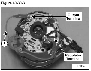 Connect a jumper wire (Item 1) [Figure 60-30-3] to the alternator output terminal and the regulator terminal.