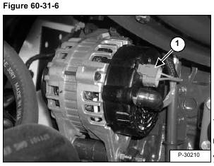Turn engine OFF and remove the L & S terminal connector (Item 1) [Figure 60-31-6] off the alternator.