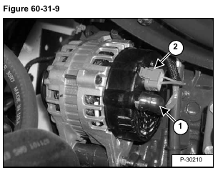 Disconnect the wiring harness connector (Item 2) [Figure 60-31-9] from the alternator.