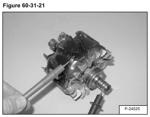 Touch one probe to one of the slip rings and the other probe to the rotor shaft [Figure 60-31-21].