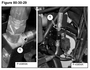 Place the remote start tool on the left fender of the loader, so the heater valve can be clearly seen. Watch the valve shaft (Item 1) [Figure 80-30-29], as the key of the remote start is turned to the ON position without starting the loader. The heater valve should rotate.