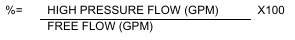 Record the flow (GPM) at system relief pressure. The high pressure flow must be at least 80% of free flow.