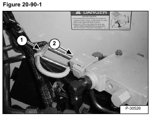 Disconnect the wire harness connector (Item 1) [Figure 20-90-1] from the bucket position shutoff solenoid.
