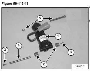 Check the spacers (Item 2), screws (Item 3), mounting pin (Item 4), bolt/nut (Item 5) [Figure 50-113-11] and
