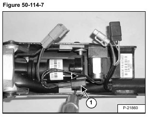 Disconnect the harness connector (Item 1) [Figure 50-114-5] from the handle sensor connector.