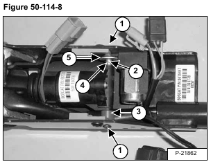 Disconnect the harness connector (Item 2) [Figure 50-114-5] from the handle lock solenoid connector.