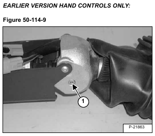wire harness (Item 1) [Figure 50-114-13] & [Figure 50-114-14] to assure proper return of the control handle to
