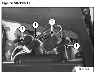 Disconnect the electrical connectors (Item 1) [Figure 50-112-17] from the control lever switch handle.
