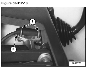 Loosen the two u-clamps (Item 1) [Figure 50-112-18] nuts.