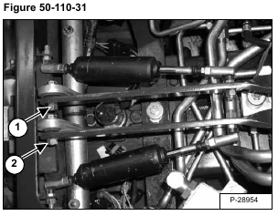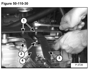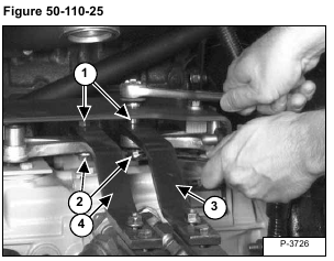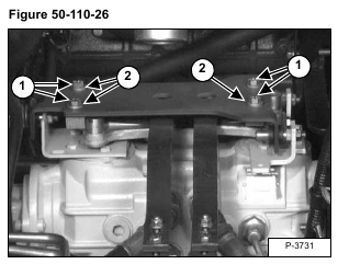 Tighten the two bolts (Item 1) to 11-13 ft.-lbs. (15-17 Nm) torque, then tighten the two nuts (Item 2) [Figure 50-110-