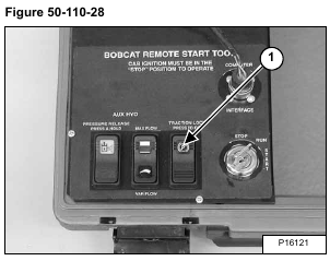 Move the traction lock override switch (Item 1) [Figure 50-110-28] to the OFF position so the traction function is unlocked. The wheels are now able to turn.