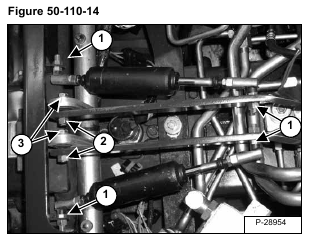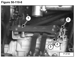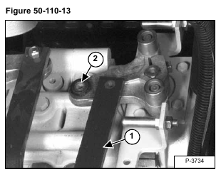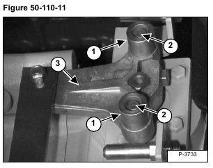 Remove the nuts (Item 2) from the linkage bar mounting bolt. The bolts (Item 3) are threaded into the linkage bars, remove the bolts (Item 3) [Figure 50-110-14].