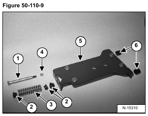 Remove the nut (Item 1) from the end of the centering spring shoulder bolt (Item 2) [Figure 50-110-7].