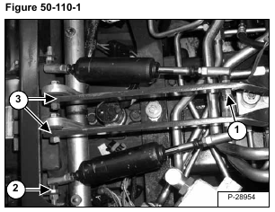 Remove the mounting nut (Item 1) [Figure 50-110-1] from the end of the shock connected to the steering linkage.
