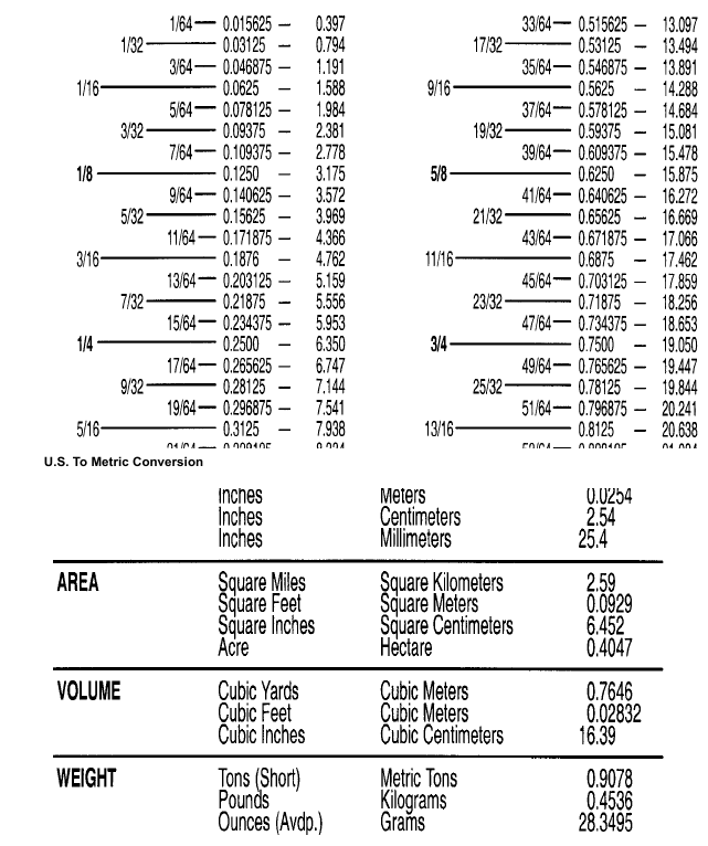 BobCat 753 – CONVERSIONS – Decimal And Millimeter Equivalents
