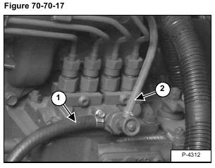 Disconnect the fuel inlet hose (Item 1) and the fuel return hose (Item 2) [Figure 70-70-17] from the injection pump vent.