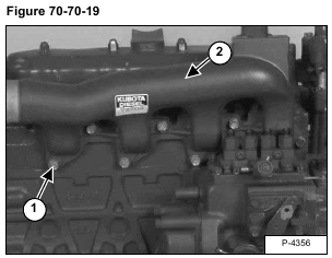 Remove the seven mounting bolts (Item 1) from the intake manifold (Item 2) [Figure 70-70-19].