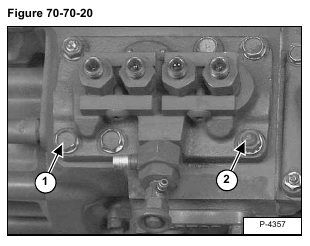 Remove the four mounting bolts (Item 1) and two nuts (Item 2) [Figure 70-70-20] from the injection pump.