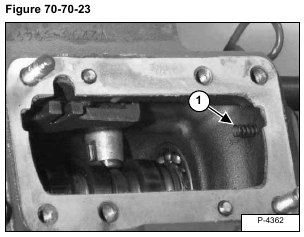 Be sure the spring (Item 1) [Figure 70-70-23] is located in the injection pump chamber as shown.