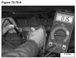 Use an ohmmeter to check the glow plugs [Figure 70-70-4].
