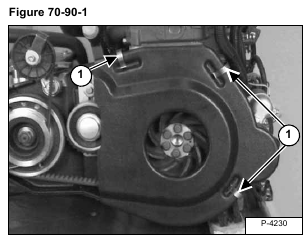 Remove the three belt shield clips (Item 1) [Figure 70-90-1] and remove the shield from the drive belt housing.