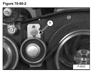 Loosen and remove the drive belt tensioner (Item 1) [Figure 70-90-2].