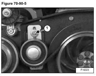 Loosen the drive belt tensioner bolt (Item 1) [Figure 70-90-5] from the housing and remove the drive belt.