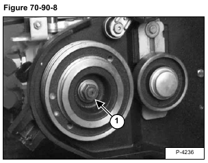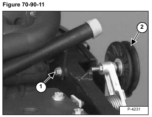 Remove the hydrostatic pump drive pulley mounting nut (Item 1) [Figure 70-90-8] and washer.