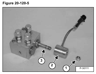 Remove the solenoid nut (Item 1) and solenoid coil (Item 2) [Figure 20-120-5].