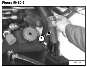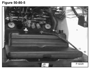 Lift the fuel tank up and remove the tank from the loader [Figure 50-80-5].