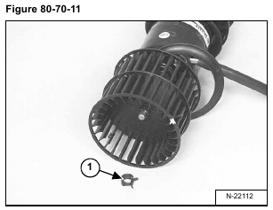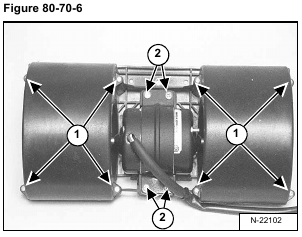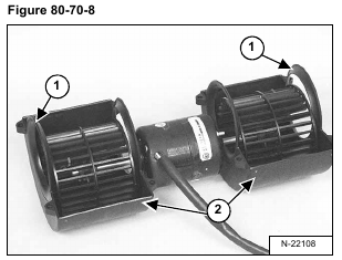 Check the blower housing (Item 1) and fan motor mount (Item 2) [Figure 80-70-7] for wear and replace as needed.