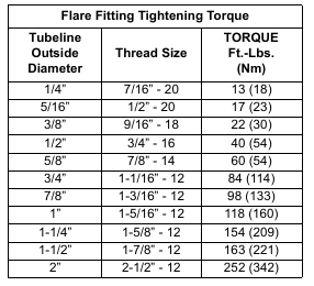 Use the chart below to find the correct tightness needed (Item 2) [Figure SPEC- 40-4]. If the fitting leaks after tightening, disconnect it and inspect the seat area for damage.