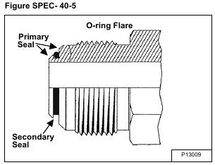 The flare is the primary seal, the O-ring is the secondary seal and helps absorb vibration and pressure pulses at the connection [Figure SPEC- 40-5].