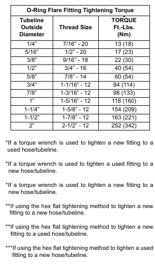 NOTE: O-ring flare fittings are not recommended in all applications. Use the standard flare fittings in these applications.