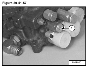 Loosen the port relief valve (Item 1) [Figure 20-41-57] & [Figure 20-41-58] (Port E1 or F2).