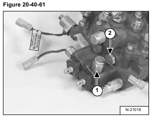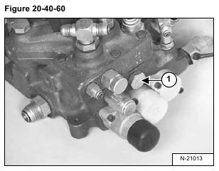 Remove the anti-cavitation valve (Item 1) [Figure 20-40-60] (Port E2) from the control valve for the tilt section.