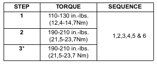 *Torque must be 190-210 in.-lbs. (21,5-23,7 Nm) for every bolt or repeat step 3.