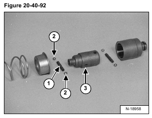Install the spring (Item 1) and detent balls (Item 2) into the adapter (Item 3) [Figure 20-40-92] and compress