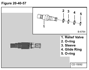 Remove the O-rings, sleeve, and glide ring from the main relief valve [Figure 20-40-57].